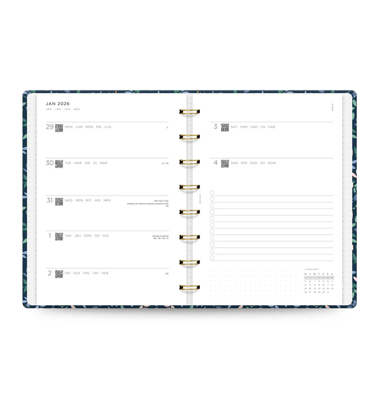 Rediscover the little joys in life with our A5 Garden Planner, inspired by traditional English flowers. Featuring pages for big plans, it also includes handy monthly planner and overview to keep you on track throughout the year. Sprinkle some joy on your days with your new go-to companion. Includes a Week on Two Pages diary with space for notes and to-dos, printed on 80 gsm fountain pen-friendly recycled paper.